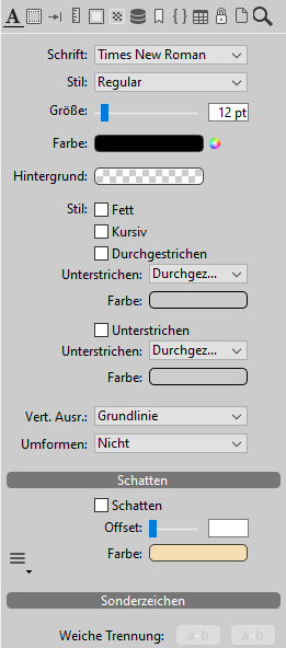 • Schrift: Schriftfamilie, z.B. "Times"