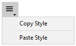 Es gibt auch eine Schaltfläche Copy/Paste (in der linken unteren Ecke der meisten Panels) mit einem dynamischen Kontextmenü, das sich jeweils nach dem Inhalt des Panels richtet. So erscheint beispielsweise im Panel Schriftstil nach Kopieren einer formatierten Textauswahl im Kontextmenü der Eintrag "Stil kopieren":