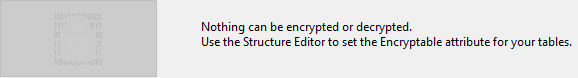注: この操作はテーブルの暗号化可能属性のステータスを変更します。データファイルが復号化されると、テーブルの暗号化ステータスは暗号化可能属性と合致しなくなります。ステータスを合致させるためには、データベースのストラクチャーレベルにおいて全ての暗号化可能属性を選択解除しなければなりません。