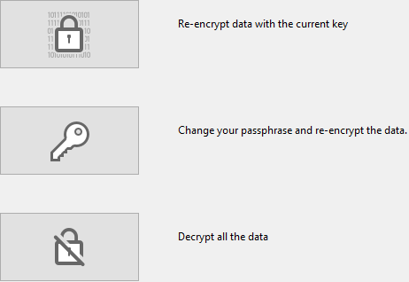 - パスフレーズを変更してデータを再暗号化するをクリックします。