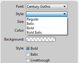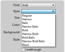 Items available in the Style menu vary based on the font selected:
