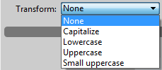 The Vert. align. menu changes text to superscript or subscript and the Transform menu switches between different cases: