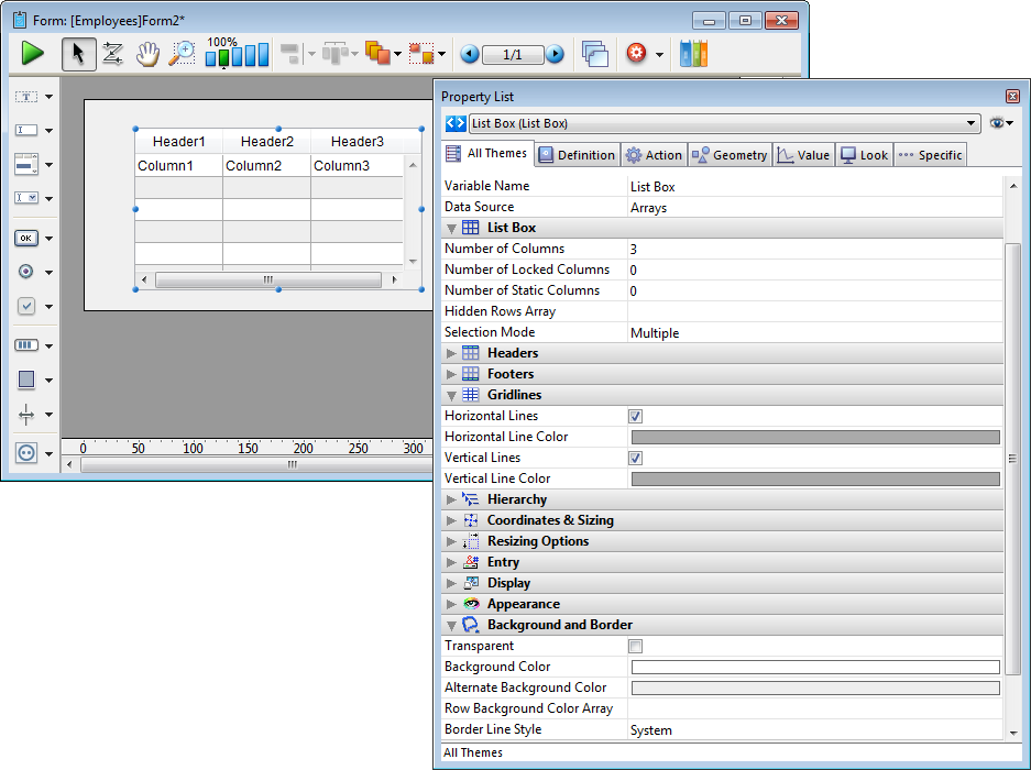 For more information about using list boxes in forms, refer to the Overview section for list boxes.