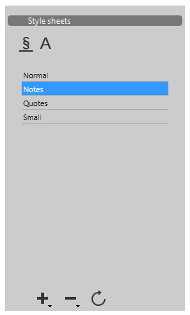 This panel manages style sheets for documents in the 4D Write Pro area.