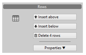 In the Rows section, you can insert / delete rows and modify row properties as well as define a row as a break row.