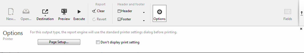- Don't display print setting: If this option is checked, when you click on the Execute button, the report is printed on the current printer without the print settings dialog box being displayed.