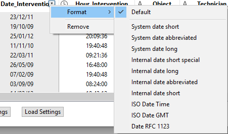 Nota: también puede definir el formato de una columna utilizando el menú contextual en el área de encabezado de columna (ver el paso 5 en Definir los datos a exportar).