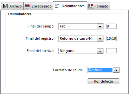Nota: los delimitadores restablecen sus valores por defecto al hacer clic en el botón Por defecto o si el tipo de documento se modifica en la página Archivo.