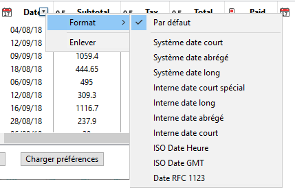 Note : Vous pouvez également définir le format d’une colonne à l’aide d’un menu contextuel (reportez-vous à l’étape n°5 dans le paragraphe Définir les données à exporter).