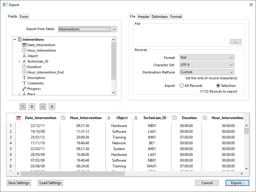 4Dは現在の並び替え順でレコードを書き出します。テーブルの全レコードを書き出すか、またはカレントセレクションだけにするか選択することができます。