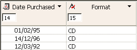 各カラムのサイズは、マウスでタイトルバーのカラムディバイダをドラッグして変更することができます。固定長テキストフォーマットを使用する場合は、この操作により、書き出しファイルのカラムに割り当てられる文字数が変わります。フィールドのデータタイプアイコンの下の入力エリアに値を直接入力して、文字数を指定することもできます。デフォルトの文字数は、テキストフィールドが80桁、文字フィールドはデザインモードで指定された最大長、数字フィールドは10桁です。