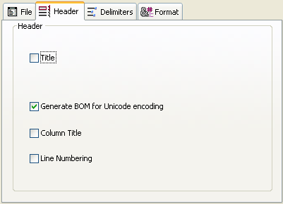 • BOM を生成オプション: このオプションは、書き出しファイルのヘッダーにByte Order Mark (BOM) を付加します。この追加の情報により、BOM をサポートするアプリケーションではテキストの解釈が容易になります。