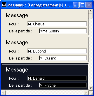 Voici par exemple un formulaire de sortie d’une base de gestion des messages téléphoniques qui utilise deux lignes par enregistrement :