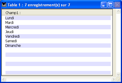 4D affiche si nécessaire des lignes vides au-dessous des derniers enregistrements affichés dans les listes de manière à remplir entièrement la fenêtre :