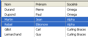 Pour sélectionner un enregistrement, cliquez dessus ou appuyez sur la touche flèche haut ou flèche bas. Un enregistrement est sélectionné. Si vous avez utilisé les touches fléchées, le premier ou le dernier enregistrement de la liste est sélectionné.