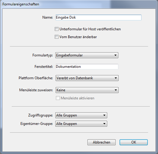 Formulareigenschaften (Explorer)
