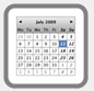 Date Picker (Seleccionador de fecha)(*)Añade un calendario asociado a una variable Date, que se puede configurar con el fin de especificar días festivos, un rango de fechas, etc.