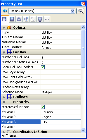 - そのオブジェクトのプロパティリストで"階層リストボックス"オプションが選択されます。