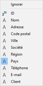 Si nécessaire, dans la zone de prévisualisation, modifiez comme vous le souhaitez l’affectation des colonnes de données importées aux champs sélectionnés. Note : Cette option n’est pas disponible si vous créez une table pour l’import ou importez les données dans un formulaire. La barre de titre de chaque colonne indique le type (sous forme d’icône) et le nom du champ importé. Vous pouvez cliquer dans cette barre pour afficher la liste des champs de la table d’import et modifier le champ devant accueillir les données de cette colonne. Pour affecter un champ à une colonne de données, vous pouvez également sélectionner la colonne et double-cliquer sur le nom du champ dans la liste hiérarchique des champs. Vous pouvez sélectionner l’option Non importée. Dans ce cas, la colonne de données ne sera pas importée.
