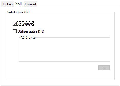 Note : Pour plus d’informations sur la DTD, reportez-vous au paragraphe Page XML.