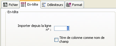 Importer de la ligne n° : permet de définir à partir de quelle ligne 4D doit importer les données. Cette option est particulièrement utile dans le cas où le fichier d’import débute par des lignes non formatées (titre, date, etc.), car les colonnes d’import sont calculées à partir du format de la première ligne.