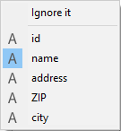 This button allows you to “intelligently” assign columns from the import file to the fields in the table according to their type and not according to the order in which they appear. The data type of each column is estimated and it is assigned to a compatible field. The interpretation is done in the following manner: