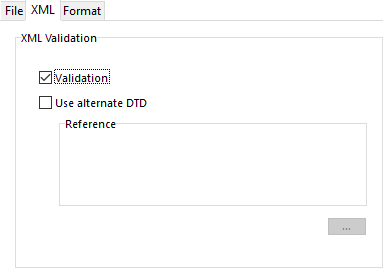 If the DTD of the imported document is not included in the document itself, but is in a separate file, or if you want to use another DTD to validate the document, check the Use alternate DTD option and indicate the file containing the DTD using the [...] button.