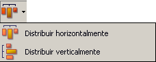 Horizontalmente, os ícones correspondem às seguintes distribuições: equidistante a margem esquerda, centro (hor.) ou margem direita dos objetos selecionados.