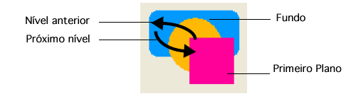 Para ordenar os diferentes planos, 4D sempre vai do fundo ao primeiro plano. Portanto, o plano anterior move a seleção de objetos de um plano ao último plano do formulário. O seguinte plano move a seleção a um nível atrás do formulário.