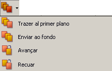 um dos comandos Enviar para trás, Trazer para frente, Avançar e Recuar no menu Objeto,