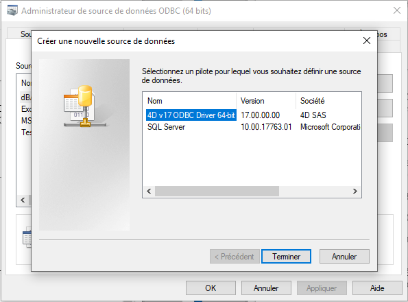 Pour ajouter une Source de données en utilisant le pilote 4D ODBC :