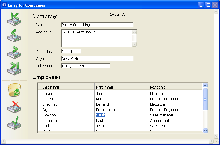 4Dはサブレコードを管理する基本的なニーズに応える3つの標準アクション、サブレコード編集、サブレコード削除、サブレコード追加を提供します。 フォームに複数のサブフォームインスタンスが含まれる場合、フォーカスを持つサブフォームにアクションが適用されます。