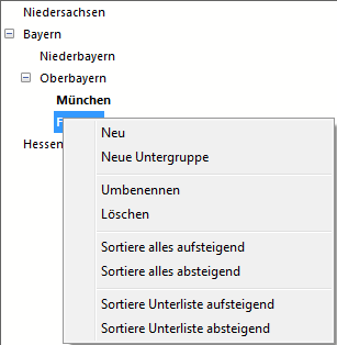 Wählen Sie im DropDown-Menü unter der mittleren Liste oder im Kontextmenü den Eintrag Neue Untergruppe.