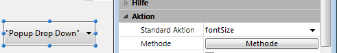 Sie weisen die Standardaktion "fontSize" dem Objekt PopUp-Menü/DropDown-Liste auf Formularebene zu: Hinweis: Weisen Sie dem Formularobjekt keine generische Standardaktion zu, können Sie nicht das automatische Aktivieren/Deaktivieren des Eintrags je nach Kontext nutzen.