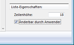 Um die Liste für den Benutzer nicht änderbar zu machen, wählen Sie die Liste aus und deaktivieren die Option Änderbar durch Anwender.