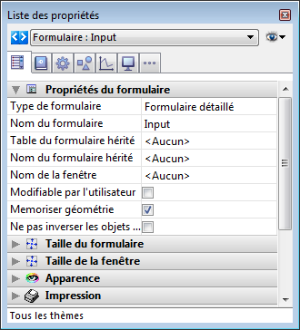 Note : Les automatismes de mémorisation sont activés uniquement si les formulaires sont rouverts avec la même taille que celle qu’ils avaient moment de leur fermeture. Par conséquent, ils s’appuient principalement sur l’emploi de la commande Creer fenetre formulaire avec le paramètre *.