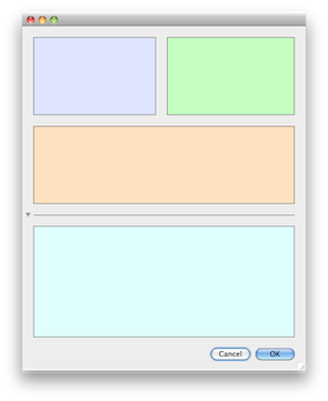 El usuario cambia el tamaño de la ventana y mueve los separadores. Los objetos se redimensionan de acuerdo a sus propias propiedades. Luego el usuario cierra la ventana. Al reabrirla, los objetos conservan su nueva apariencia:
