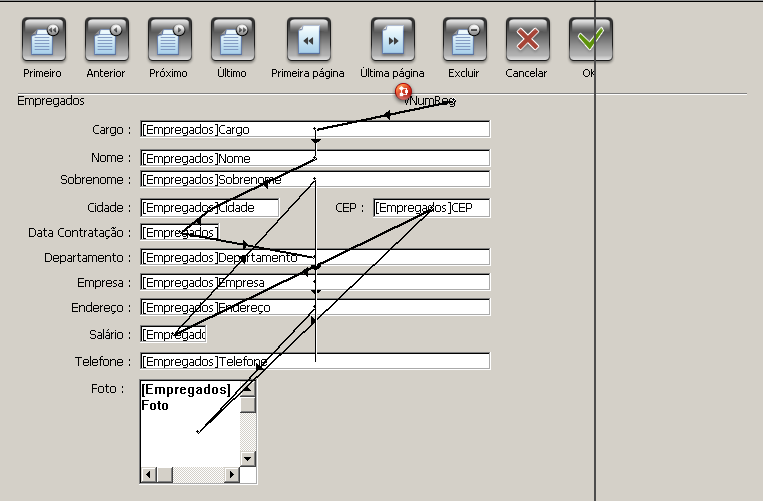 O objeto selecionado passa a ser o primeiro na ordem de entrada e o objeto que estava de primeiro passa a ser o segundo. Agora pode arrastar o cursor de um objeto a outro segundo a ordem de entrada de dados que deseje aplicar. - Uma vez que tenha terminado, selecione novamente Ordem de entrada de dados no menu Formulário ou clique em outra ferramenta da barra de ferramentas. O editor de formulários volta ao seu funcionamento normal.