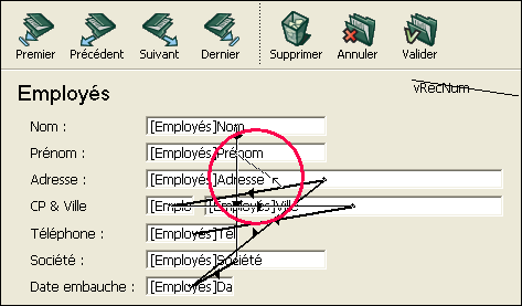 4. Lorsque vous êtes satisfait de l’ordre de saisie, sélectionnez de nouveau la commande Ordre de saisie dans le menu Formulaire ou cliquez sur un autre outil de la barre d’outils.