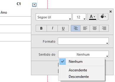 Em um relatório em tabela cruzada, só podem ser ordenados os valores das fontes de dados horizontais e verticais (as duas fontes de dados usadas como categorias na tabela final).