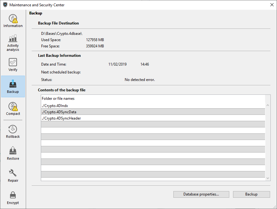 Página Backup