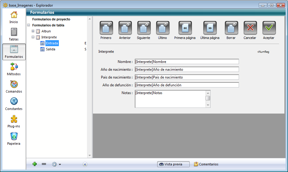 Para mayor información sobre la edición de formularios, consulte el capítulo Creación de formularios.