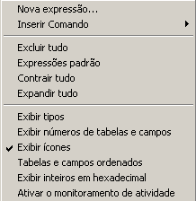 Também pode adicionar uma Nova expressão ou inserir um Comando 4D ou realizar operações globais como: Eliminar tudo, mostrar todas as Expressões padrão, Contrair tudo ou Expandir tudo.