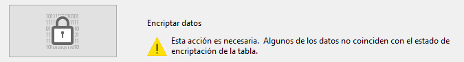 Nota: esta operación modifica el estado de Cifrado de sus tablas. Una vez que se descifra el archivo de datos, el estado de cifrado de las tablas no coincide con sus atributos de cifrado. Para restaurar un estado coincidente, debe deseleccionar todos los atributos de Cifrado en el nivel de estructura de la base.