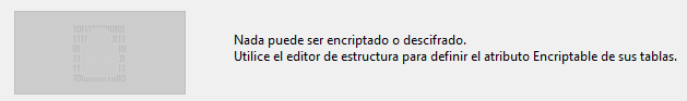 En el editor de Estructura, verifique el atributo Encriptable para cada tabla cuyos datos desea cifrar. Ver la sección Propiedades de las tablas.