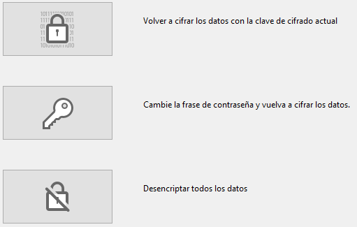 Haga clic en Volver a cifrar los datos con la llave de cifrado actual.