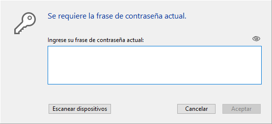 Puede guardar la llave de cifrado cada vez que se proporcione una nueva frase de contraseña: