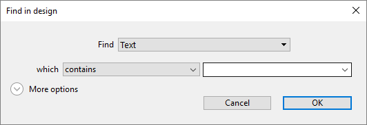 Specify your search criteria in the "Find in design" window: