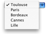 A l’exécution du formulaire, 4D gère automatiquement le pop up menu ou la combo box en saisie ou à l’affichage : lorsque l’utilisateur choisit une valeur, elle est stockée dans le champ ; à l’affichage, la valeur du champ est affichée dans le pop up menu :