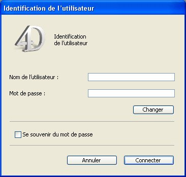 Pour remplacer cette icône par celle de votre choix, il vous suffit de placer un fichier nommé LoginImage.png dans le dossier Resources de la base (situé à côté du fichier de structure de la base, cf. section Description des fichiers de 4D). Le fichier personnalisé doit être de type “png” et sa taille doit être de 80x80 pixels.
